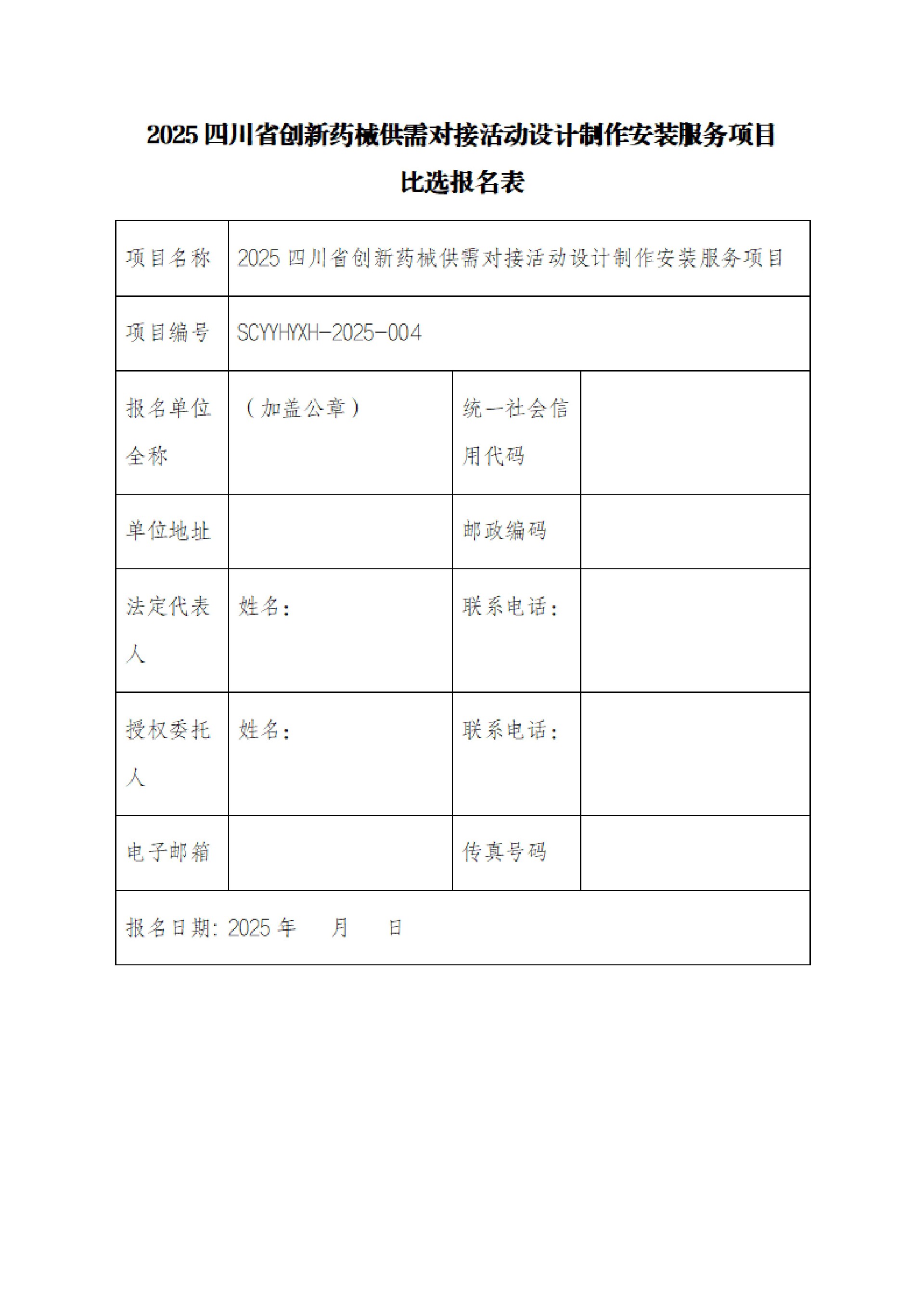 2025四川省创新药械供需对接活动设计制作安装服务项目比选公告