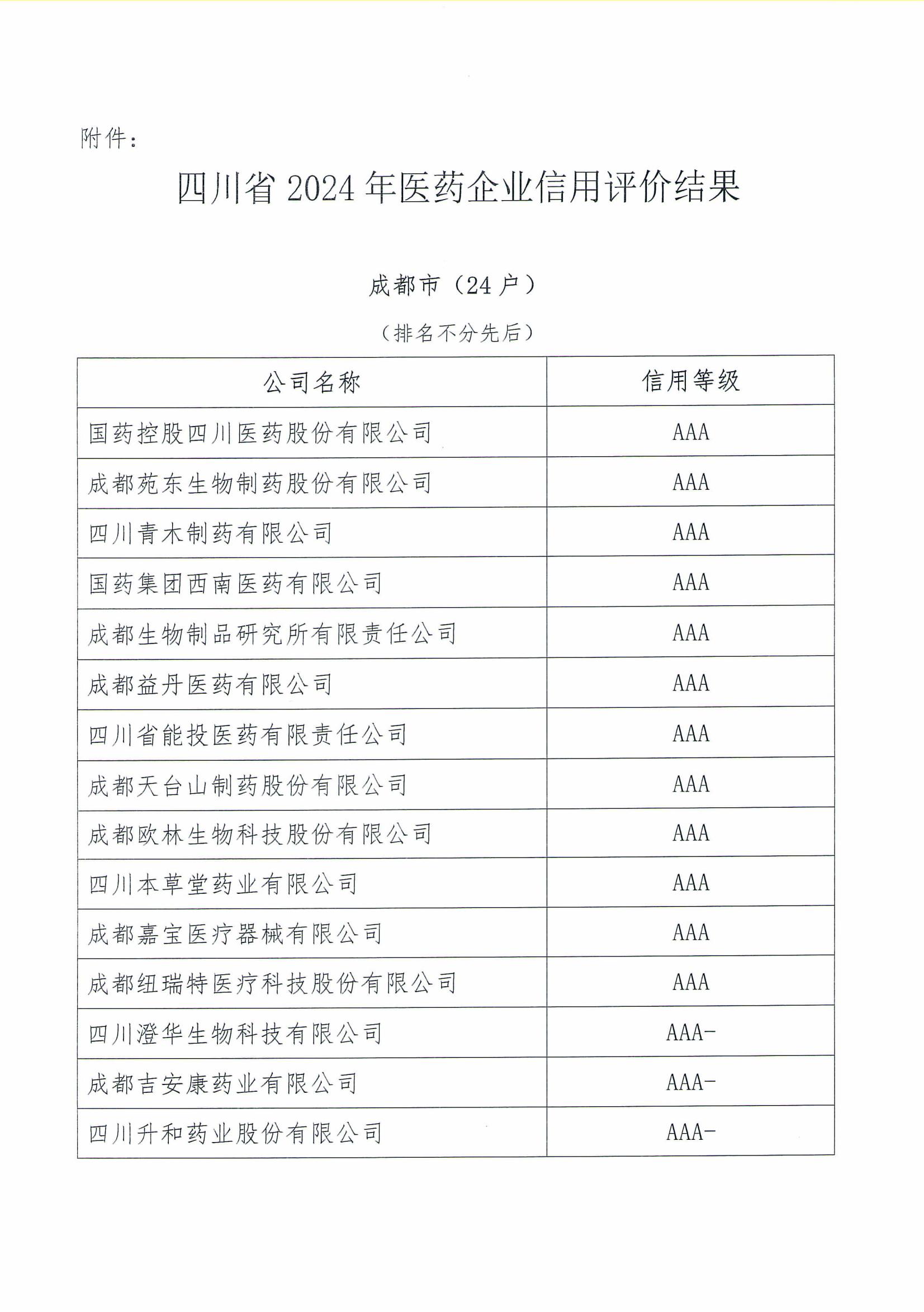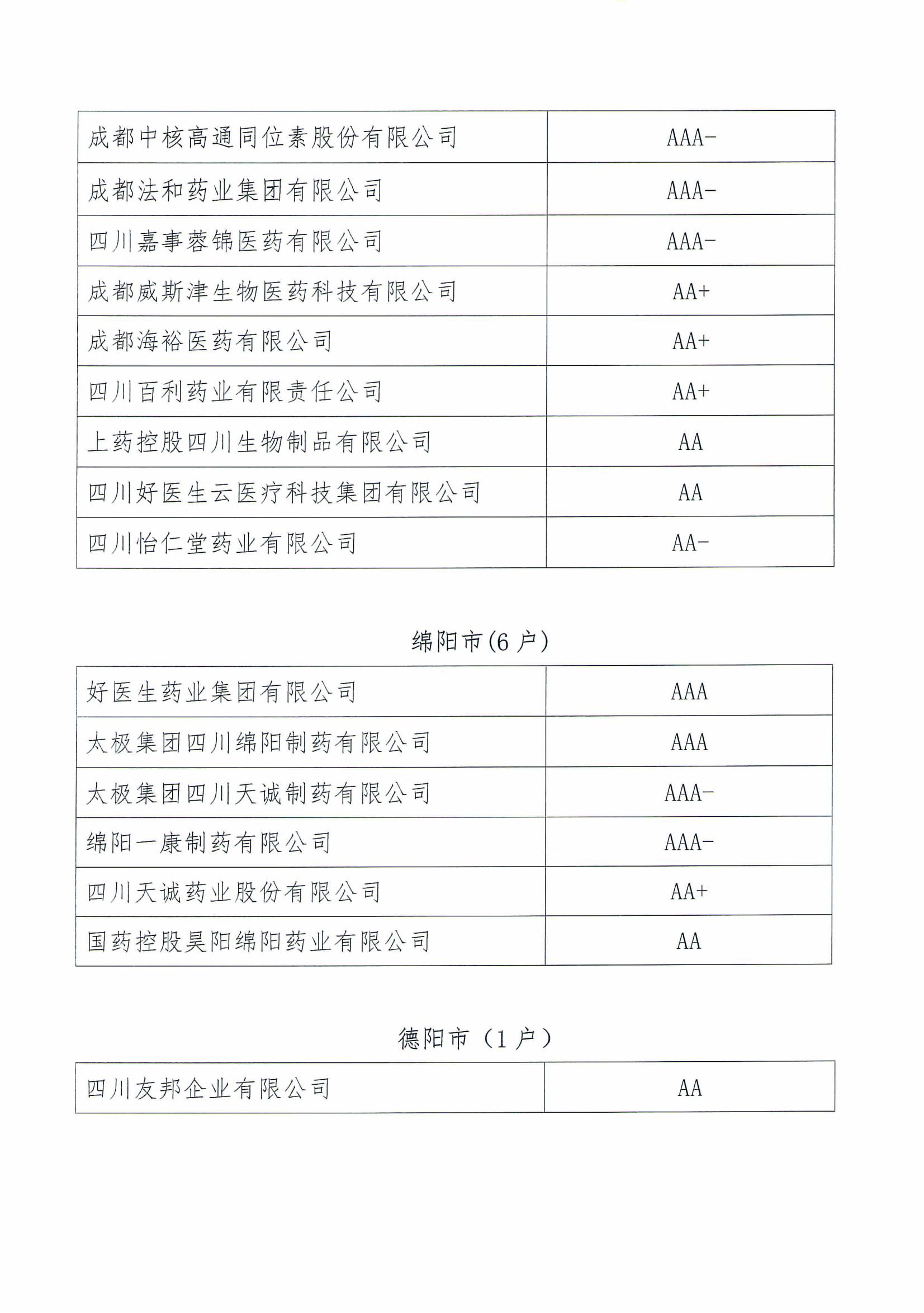 关于四川省2024年医药企业信用评价结果的公示