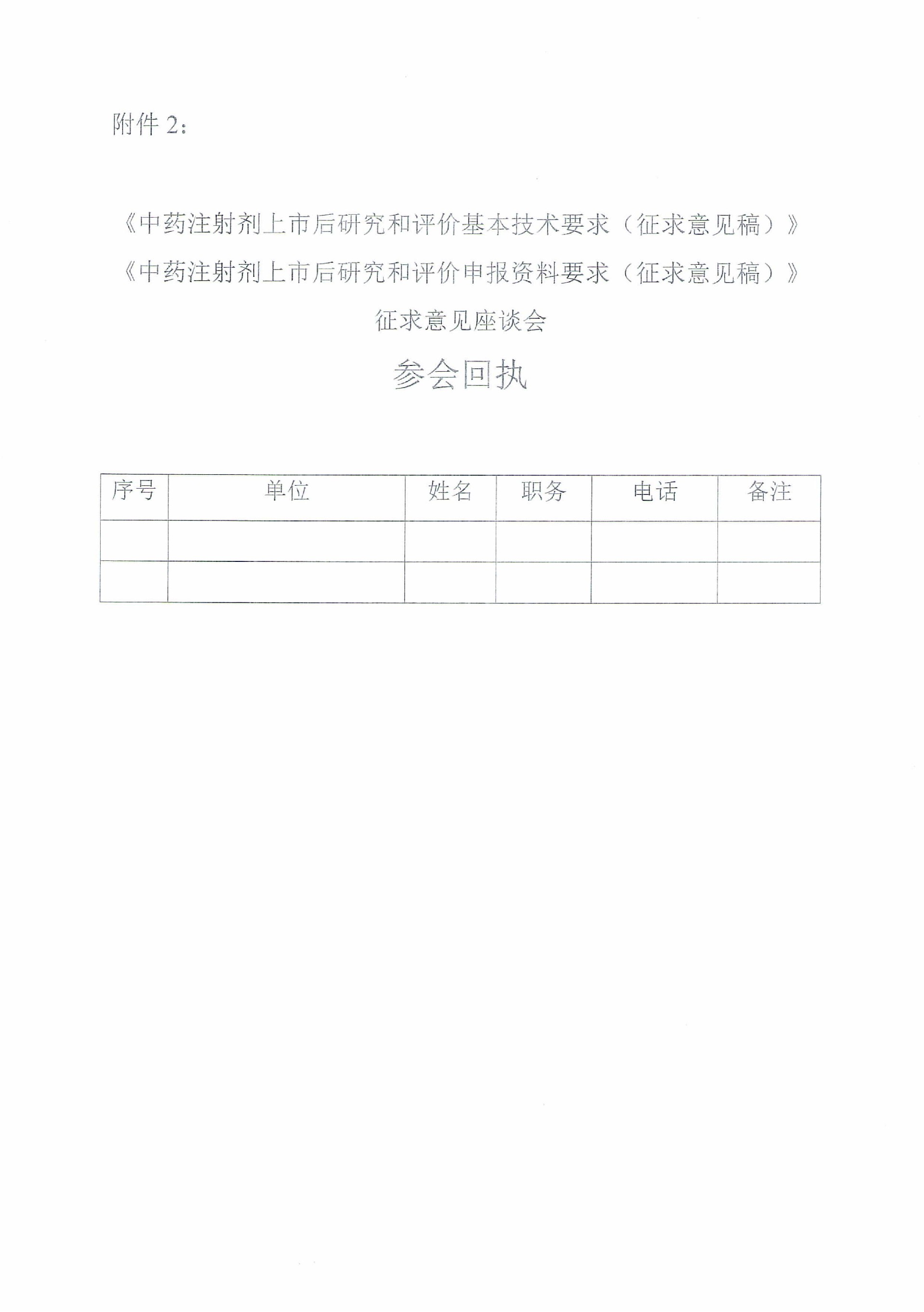 关于召开《中药注射剂上市后研究和评价基本技术要求(征求意见稿)》《中药注射剂上市后研究和评价申报资料要求(征求意见稿)》征求意见座谈会的通知