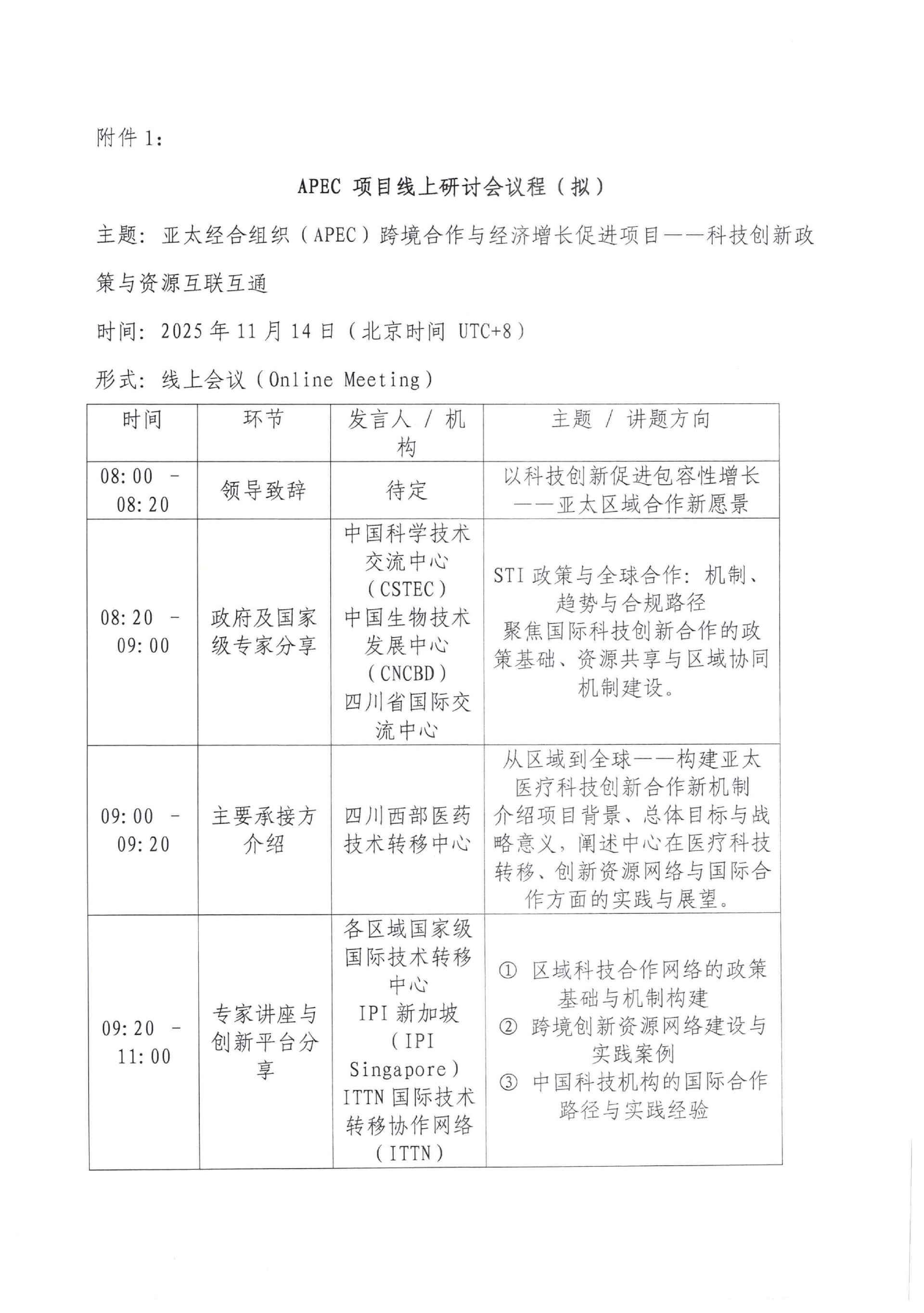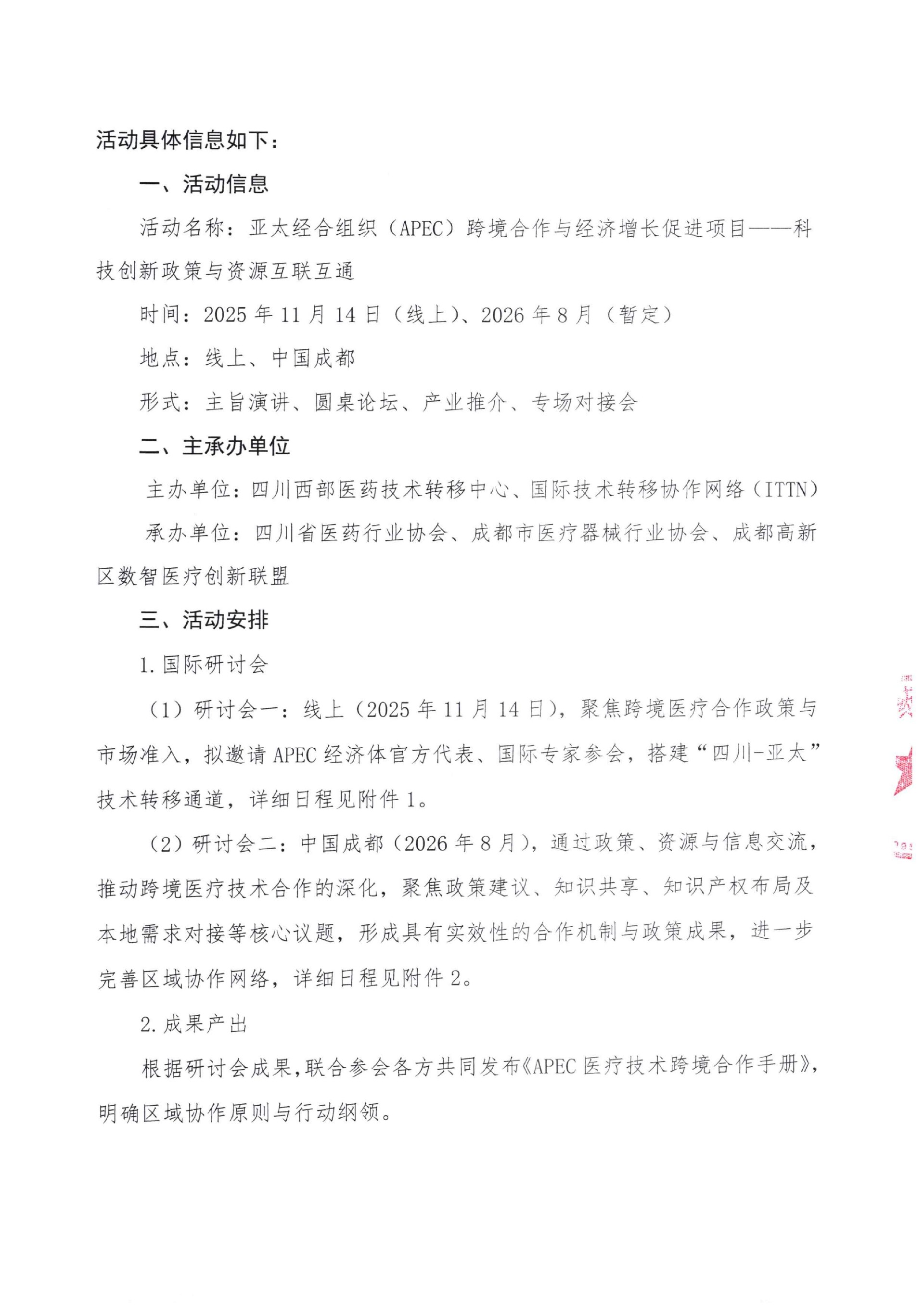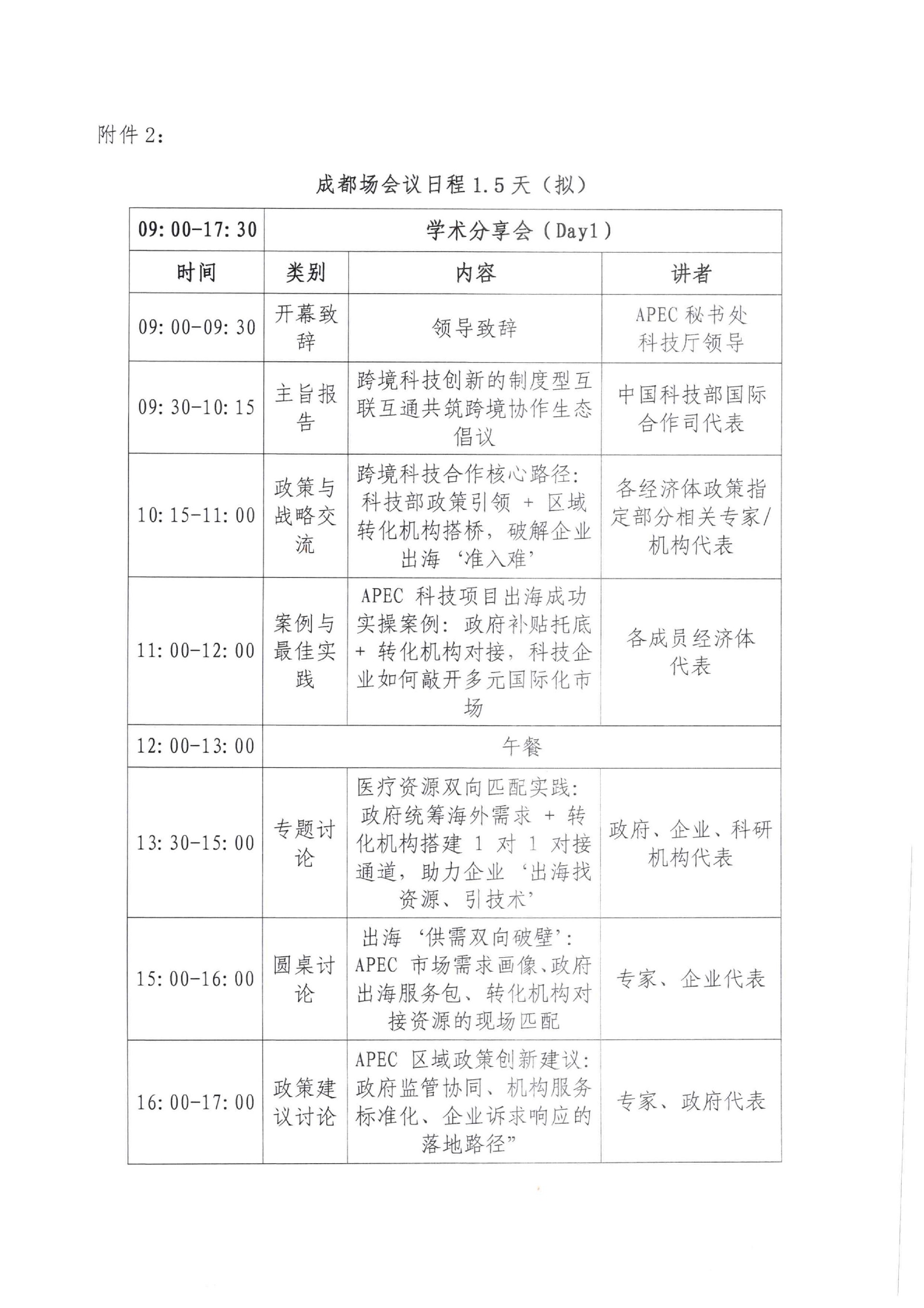 关于邀请参加 APEC 科技创新合作旗舰项目会议的通知