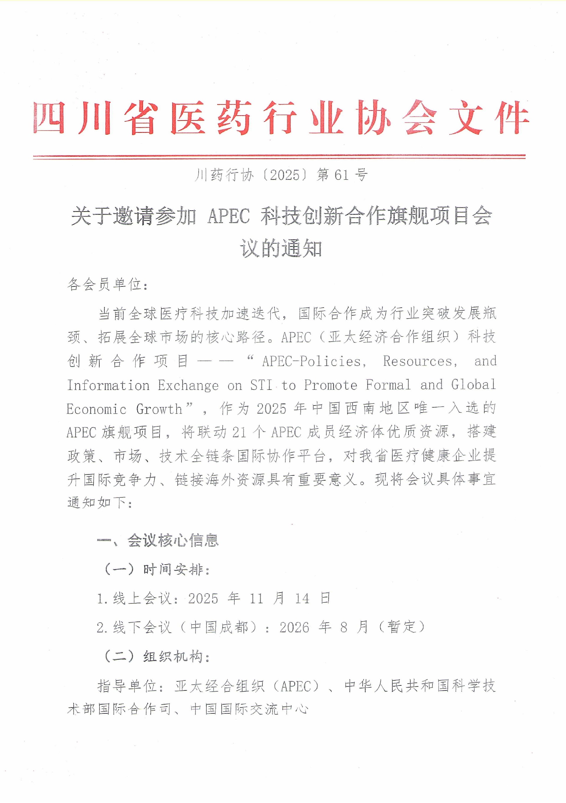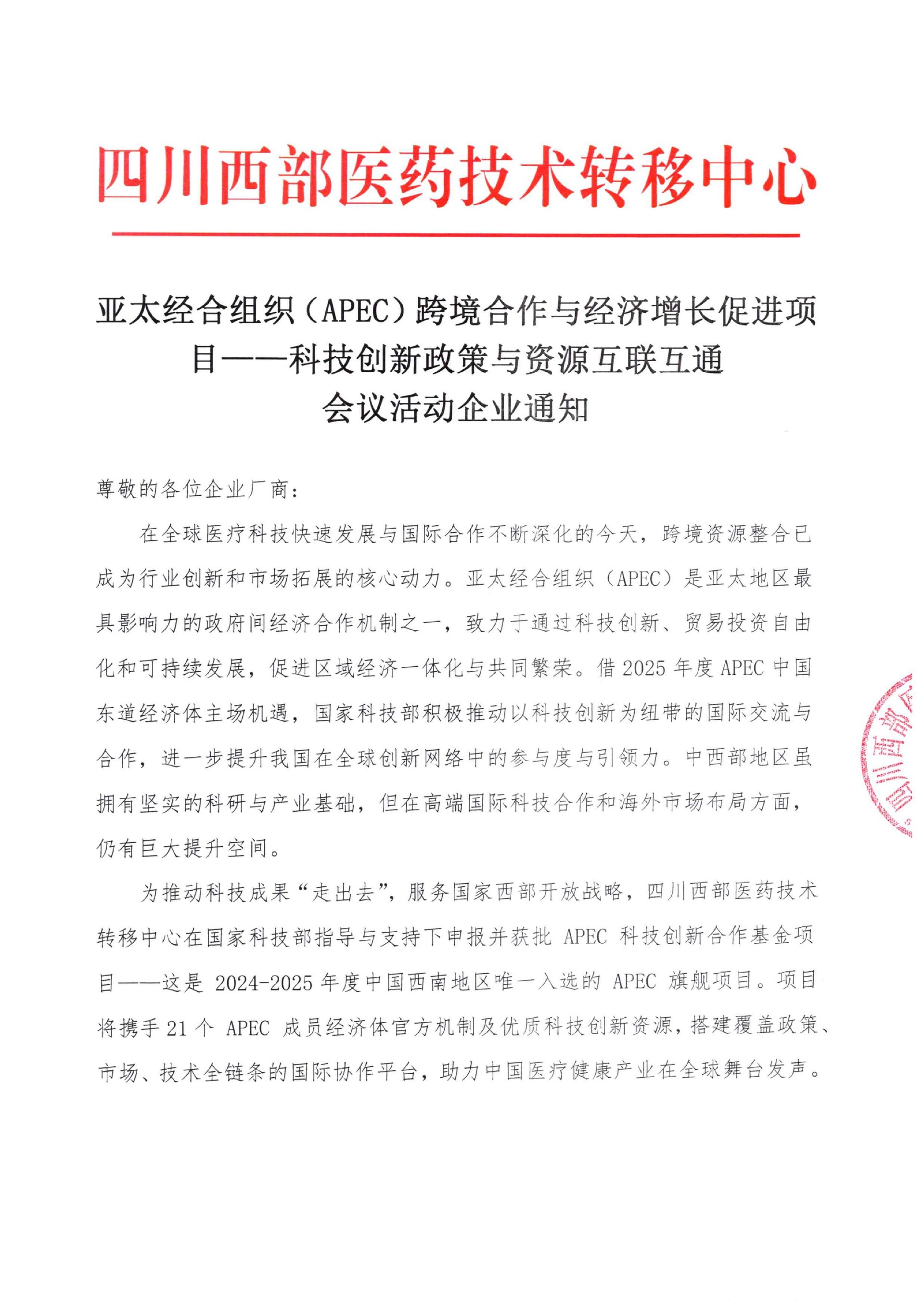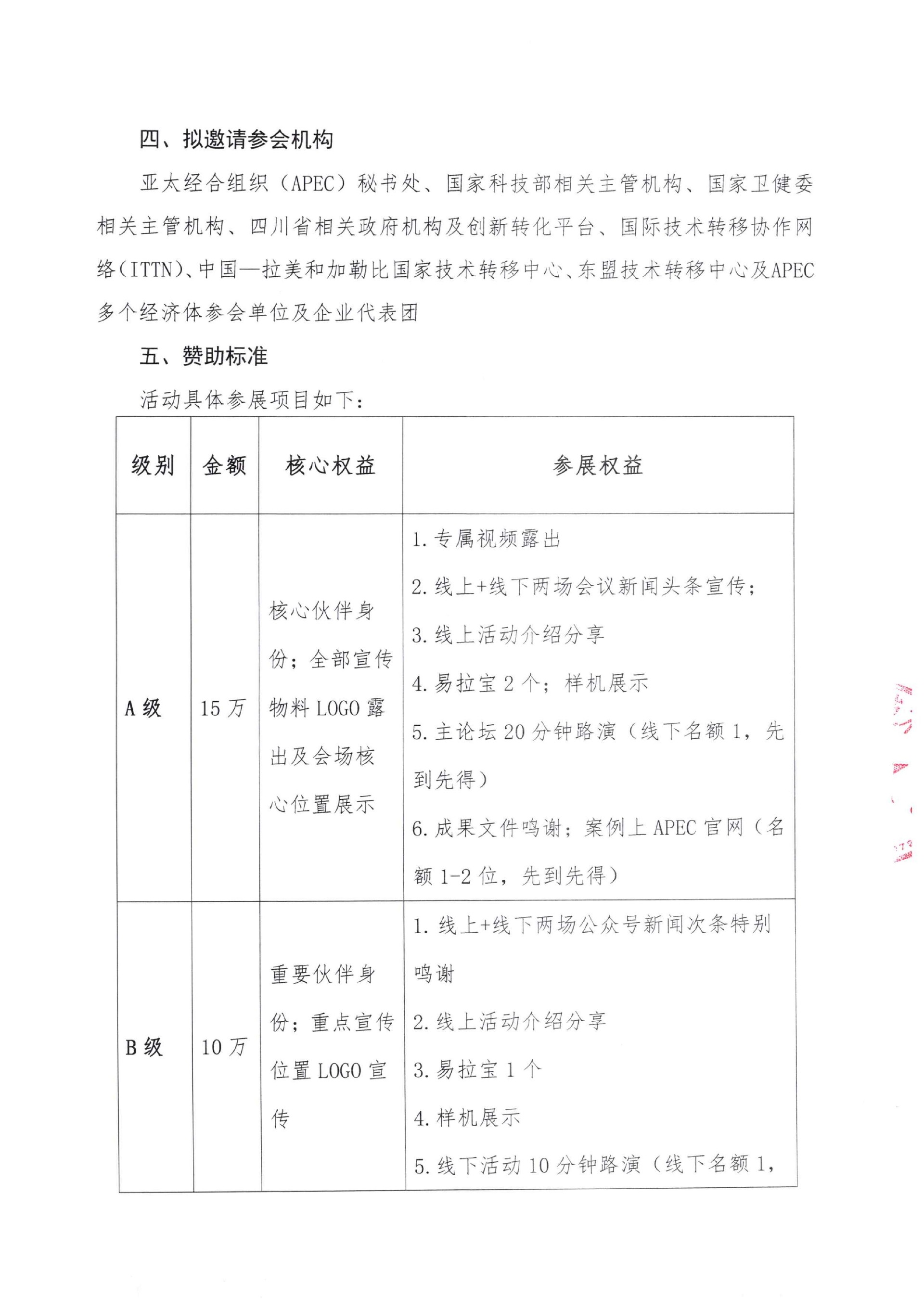 关于邀请参加 APEC 科技创新合作旗舰项目会议的通知